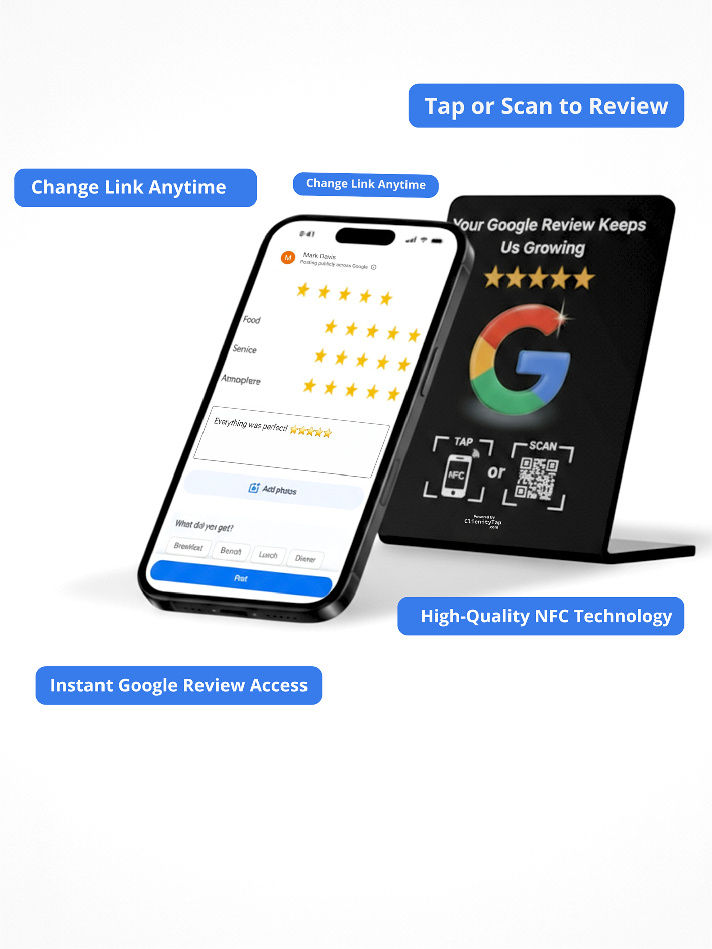 Experience the ultimate review collection tool that blends innovative NFC technology with stylish design, making it incredibly easy for customers to share their feedback instantly and effectively—setting you apart from the competition.